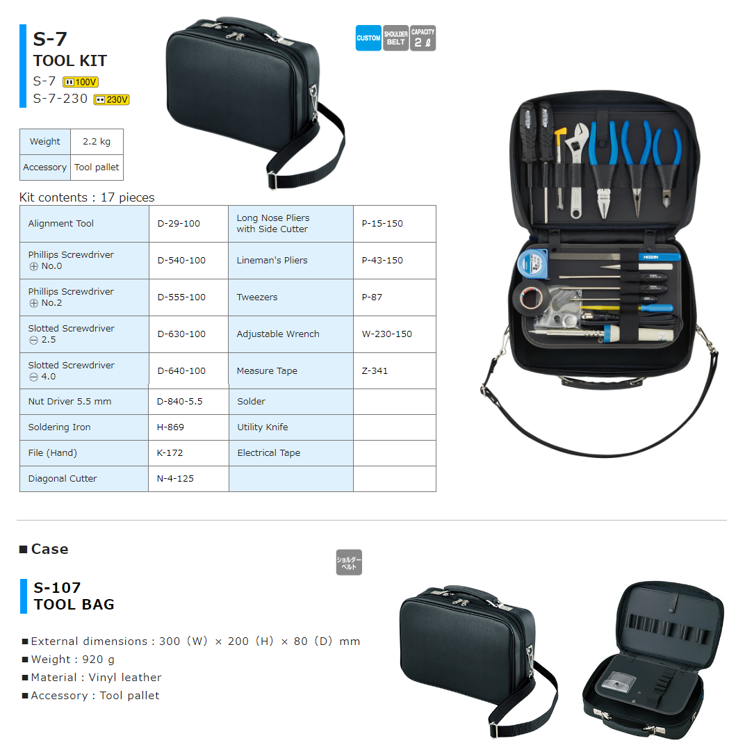 Link: https://www.hozan.co.jp/E/catalog/Tool_Kits/S-7.html