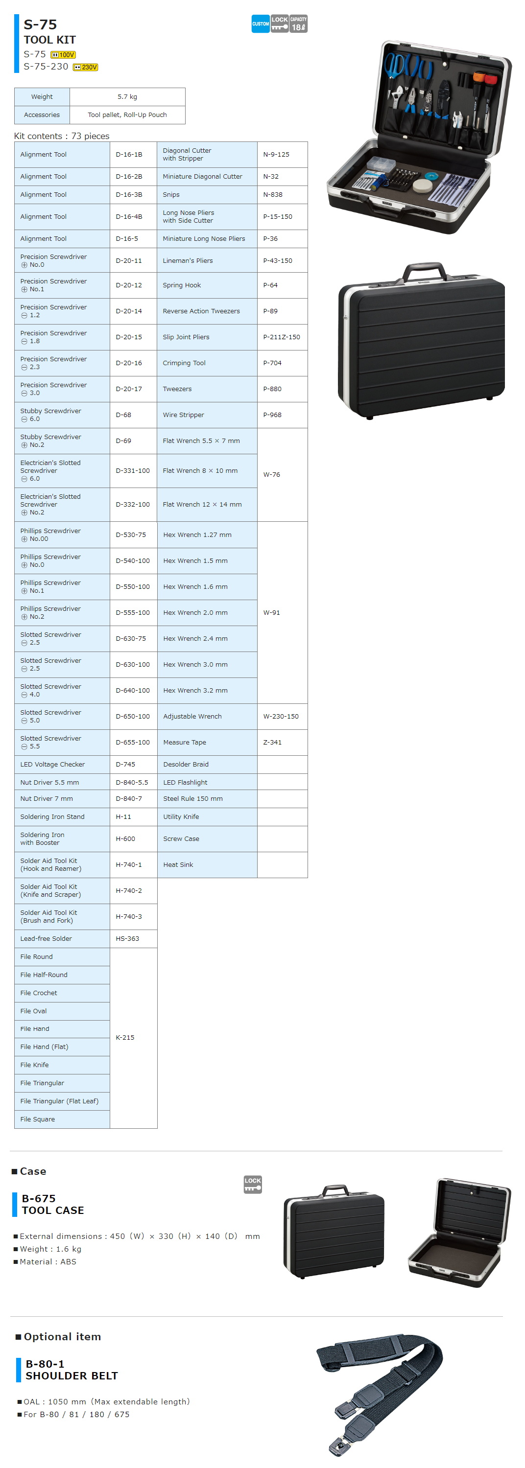 Bộ KIT dụng cụ HOZAN S-75 (73 chi tiết)