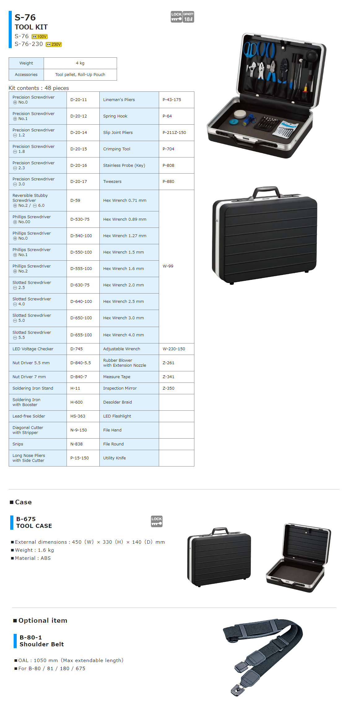 Link: https://www.hozan.co.jp/E/catalog/Tool_Kits/S-76.html