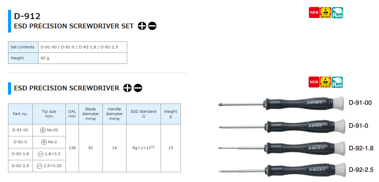 Bộ tuốc nơ vít chính xác chống tĩnh điện ESD HOZAN D-912