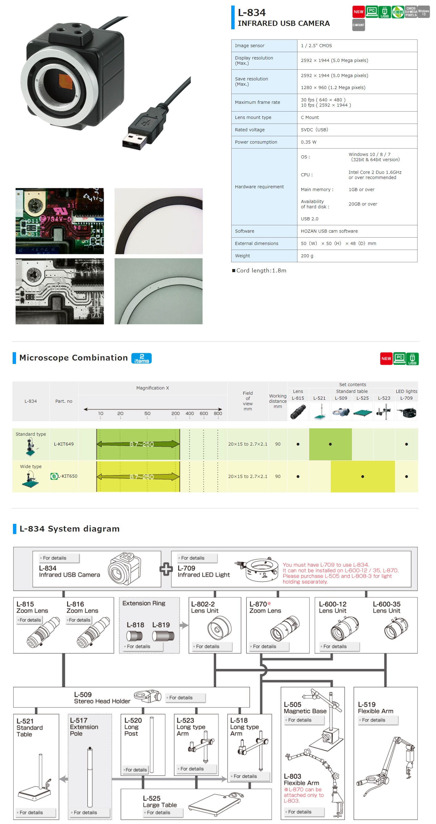 Chi tiết hơn về sản phẩm vui lòng Click vào đường Link của hãng: https://www.hozan.co.jp/E/catalog/Microscopes/L-834.html