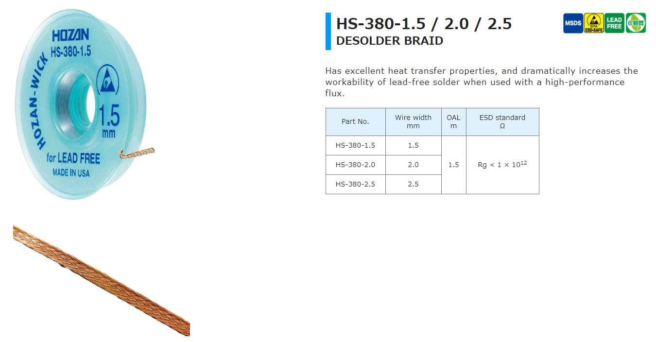 Dây bện làm sạch thiếc HOZAN HS-380-1.5 / 2.0 / 2.5