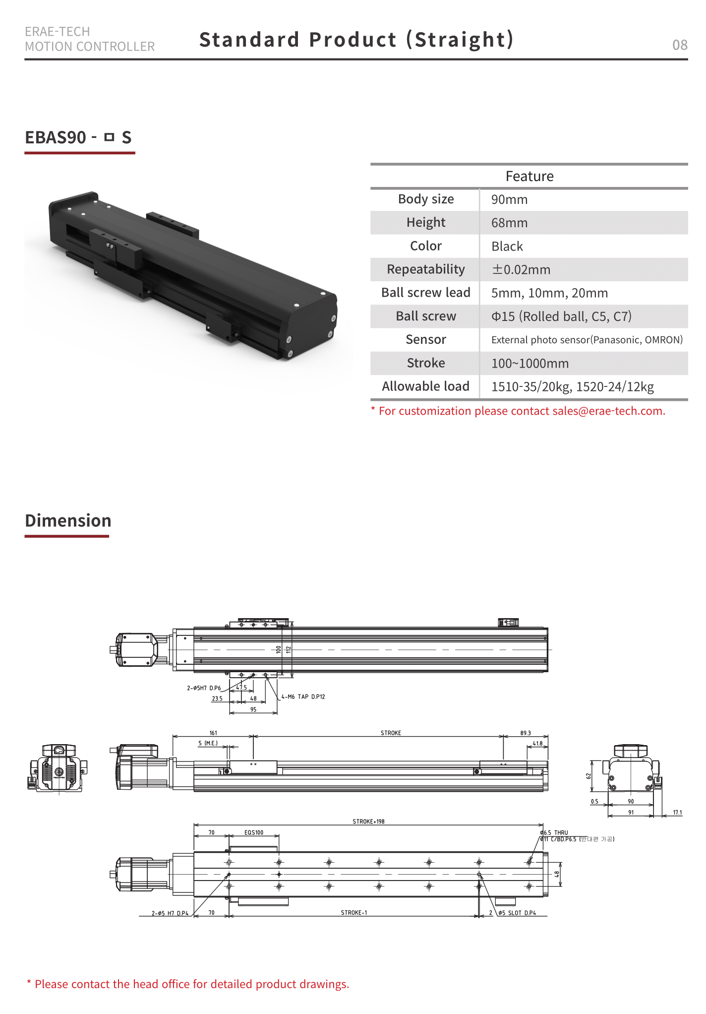 * Ball Screw type selectable (Rolled, C5, C7)