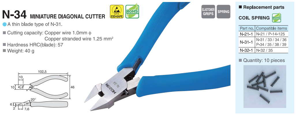 Kìm cắt chân linh kiện loại nhỏ HOZAN N-34