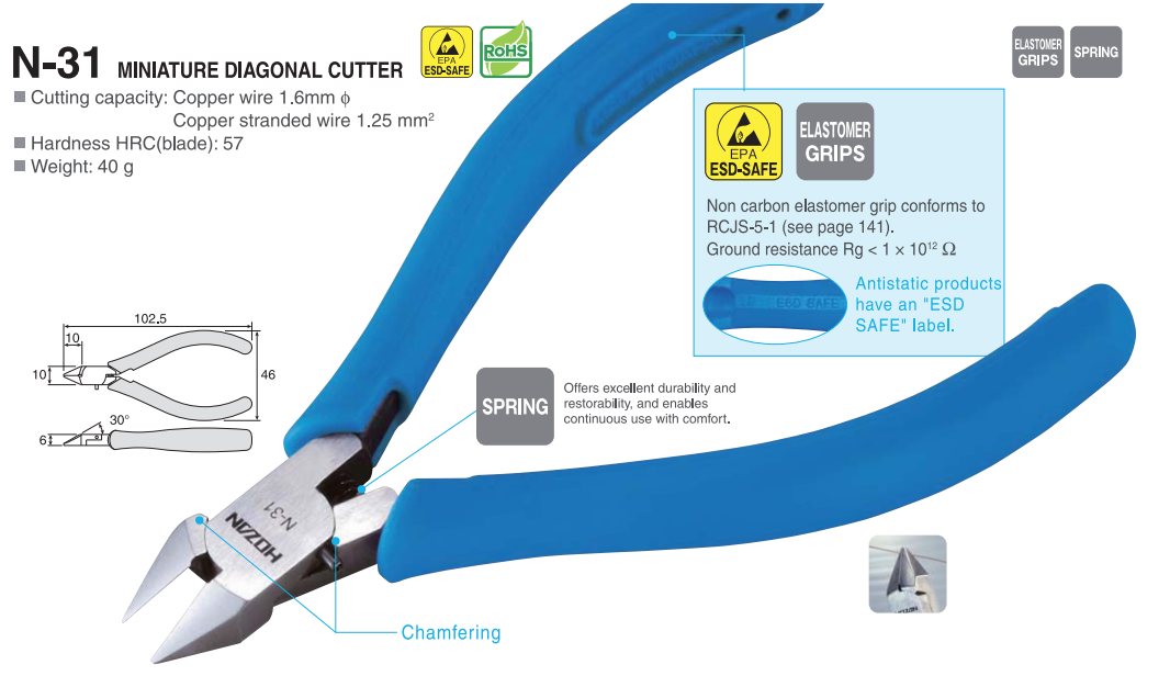 Kìm cắt chân linh kiện loại nhỏ HOZAN N-31