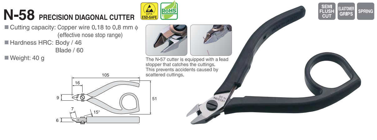 Kìm cắt chân linh kiện HOZAN N-58