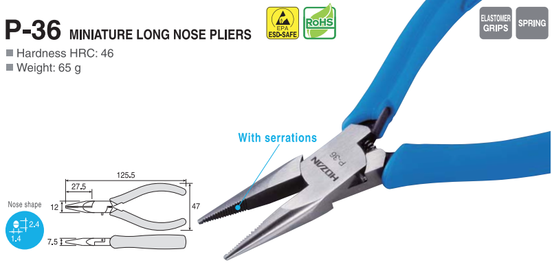 Kìm mỏ nhọn có răng cưa HOZAN P-36