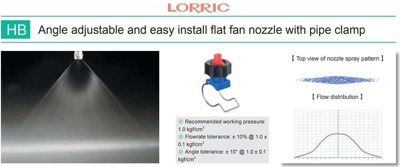 LORRIC EB+HB - Vòi phun, Béc phun hình quạt phẳng dạng kẹp có điều chỉnh góc