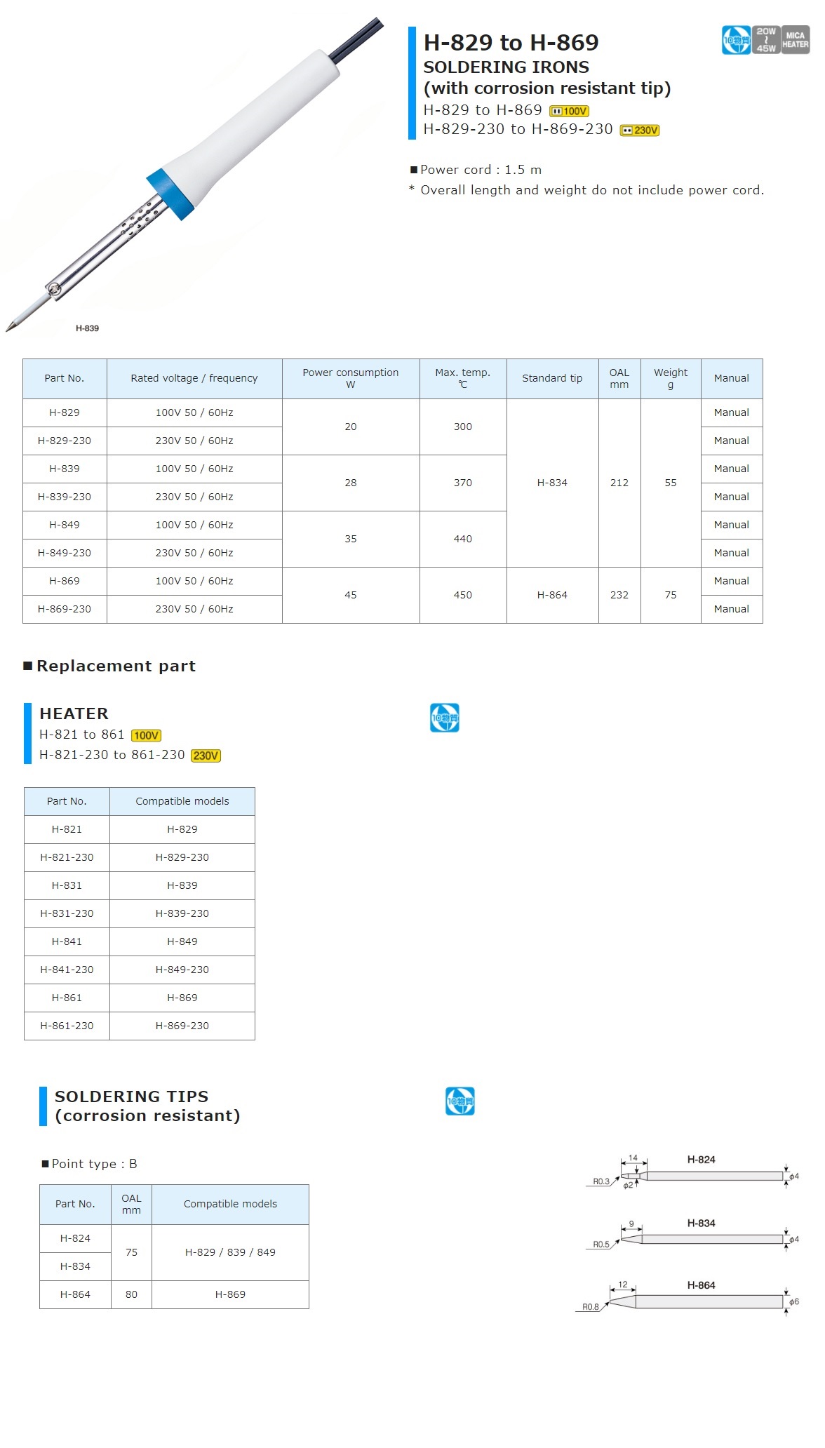 Part No: H-829, H-829-230, H-839, H-839-230, H-849, H-849-230, H-869, H-869-230.