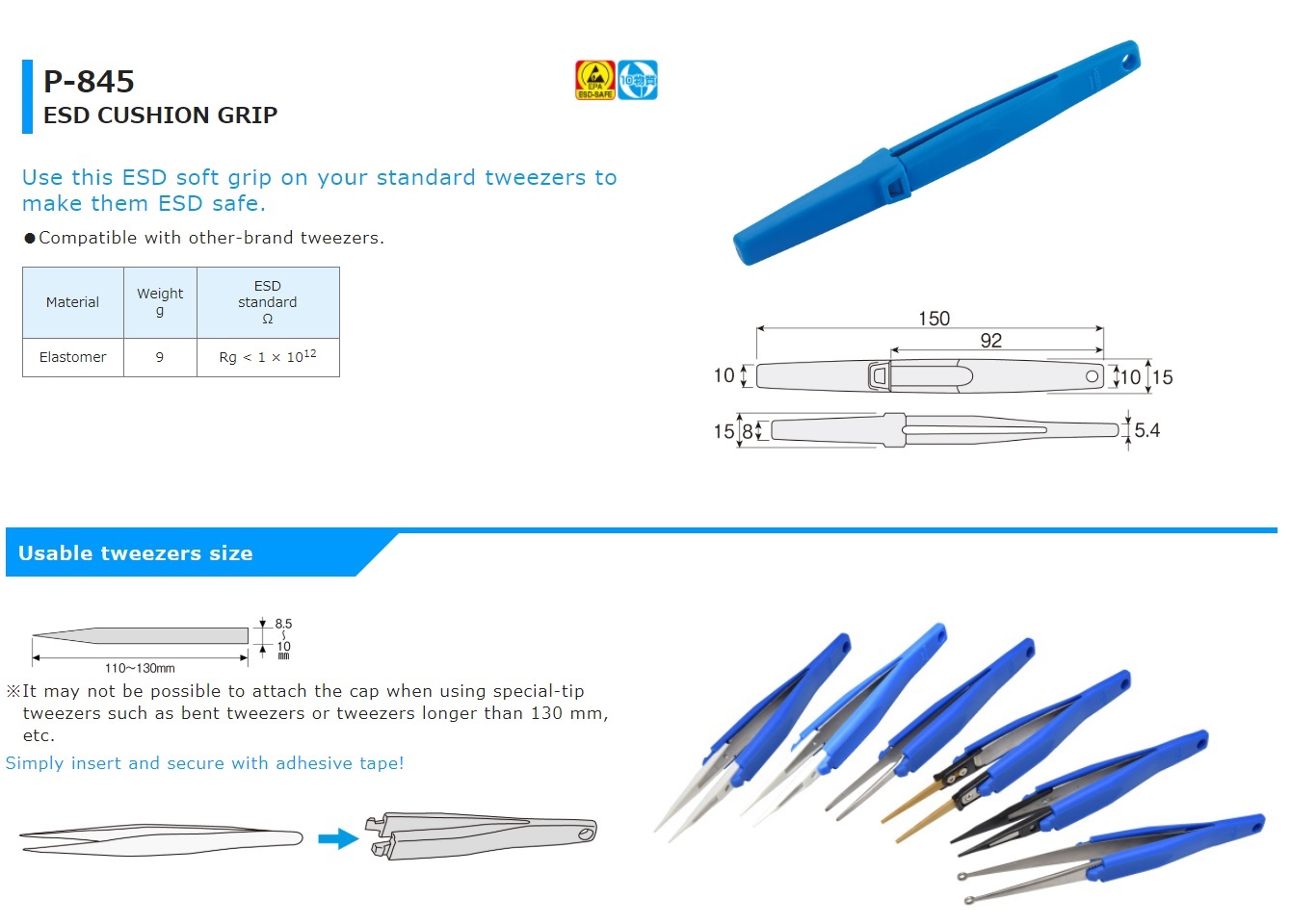 Nhíp có tay nắm chống tĩnh điện HOZAN P-845