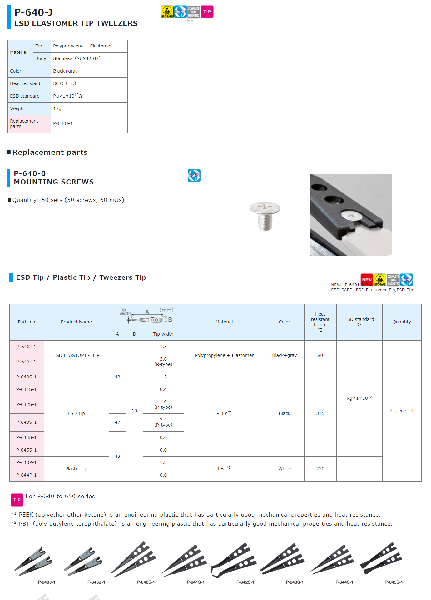 Nhíp đàn hồi chống tĩnh điện ESD HOZAN P-640-J