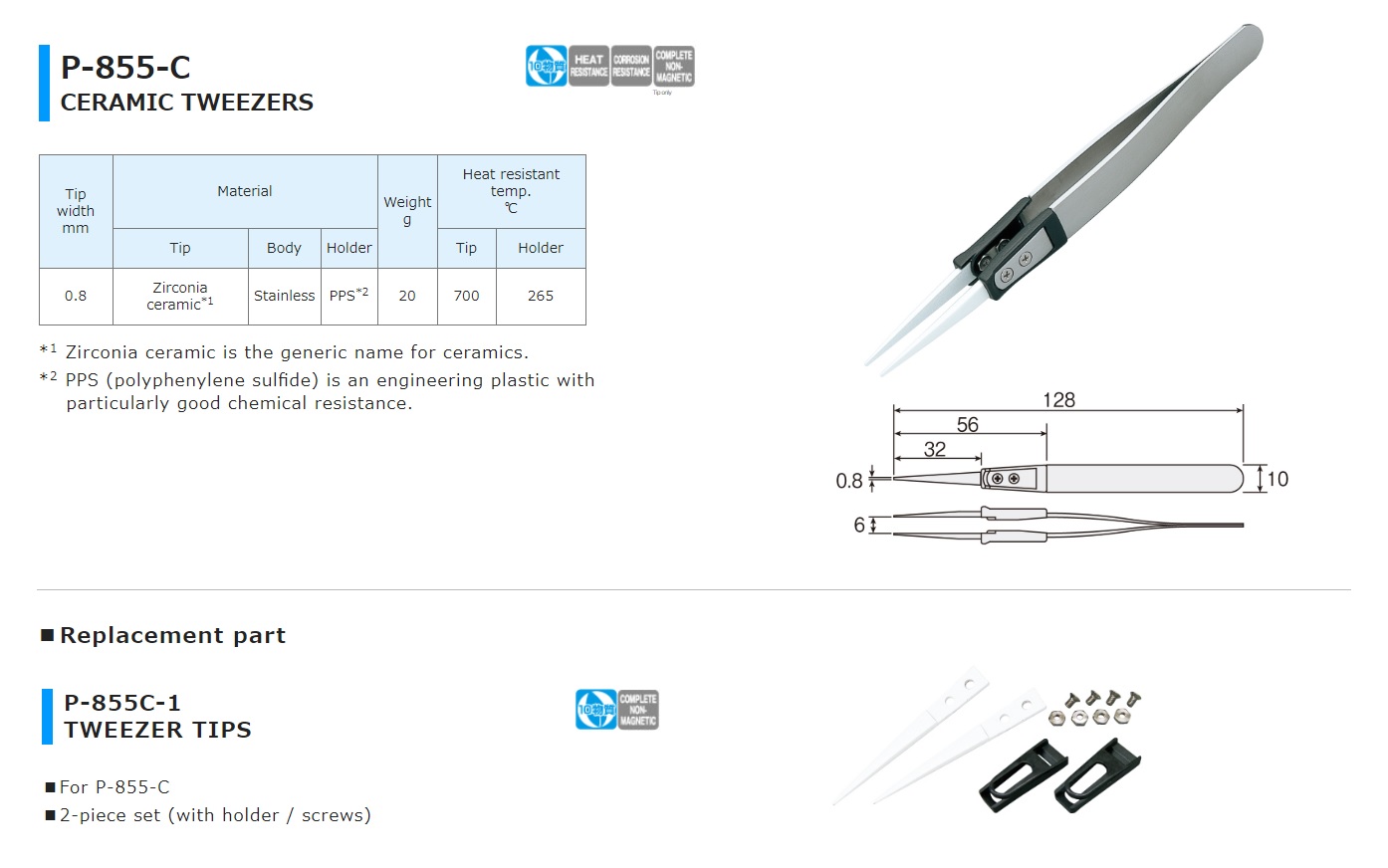 Nhíp không gỉ đầu gốm sứ HOZAN P-855-C