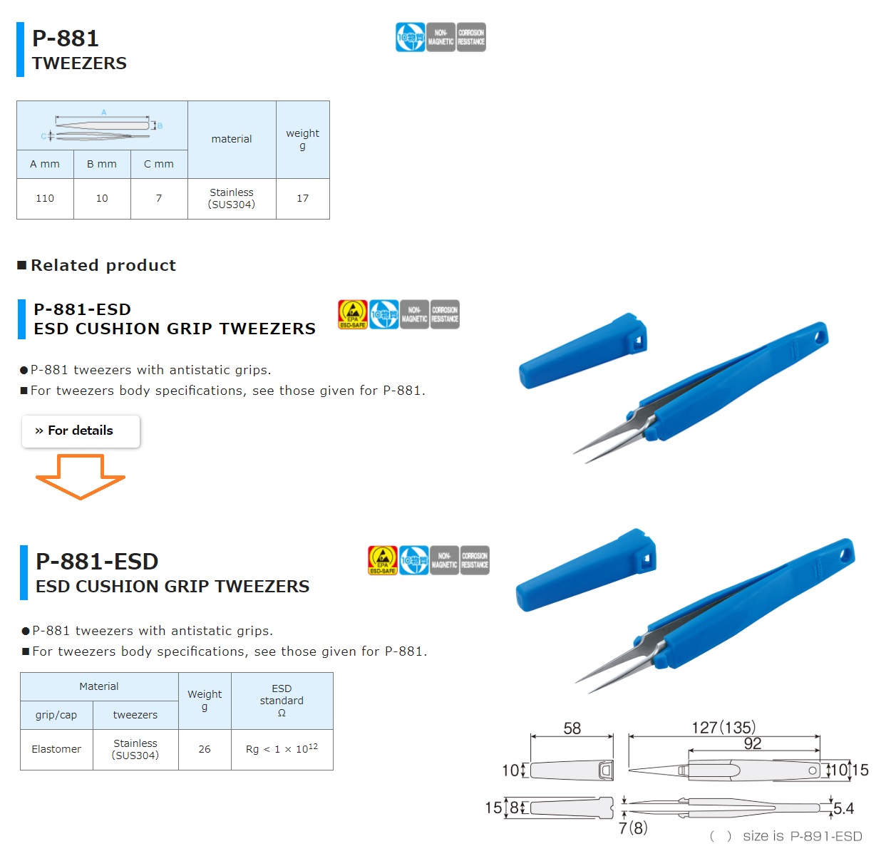 Nhíp tiêu chuẩn HOZAN P-881