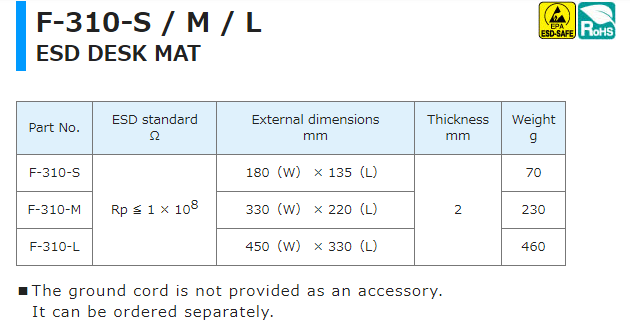 Thảm trải bàn chống tĩnh điện ESD_HOZAN F-310-S / M / L