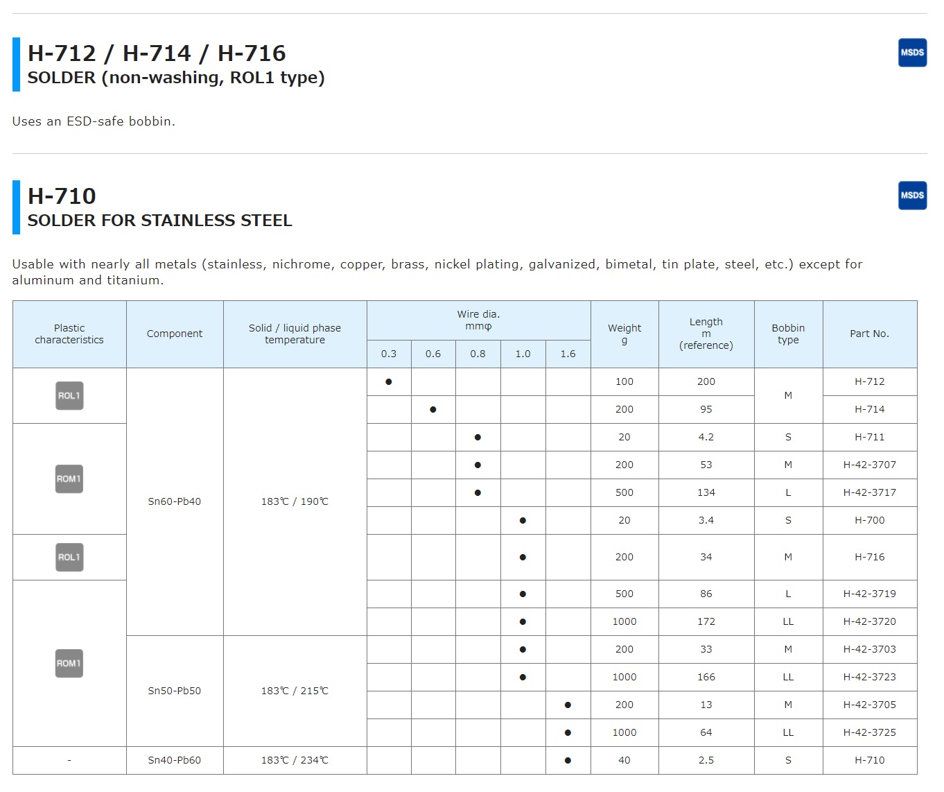Thiếc hàn không chì HOZAN H-710 / H-712 / H-714 / H-716
