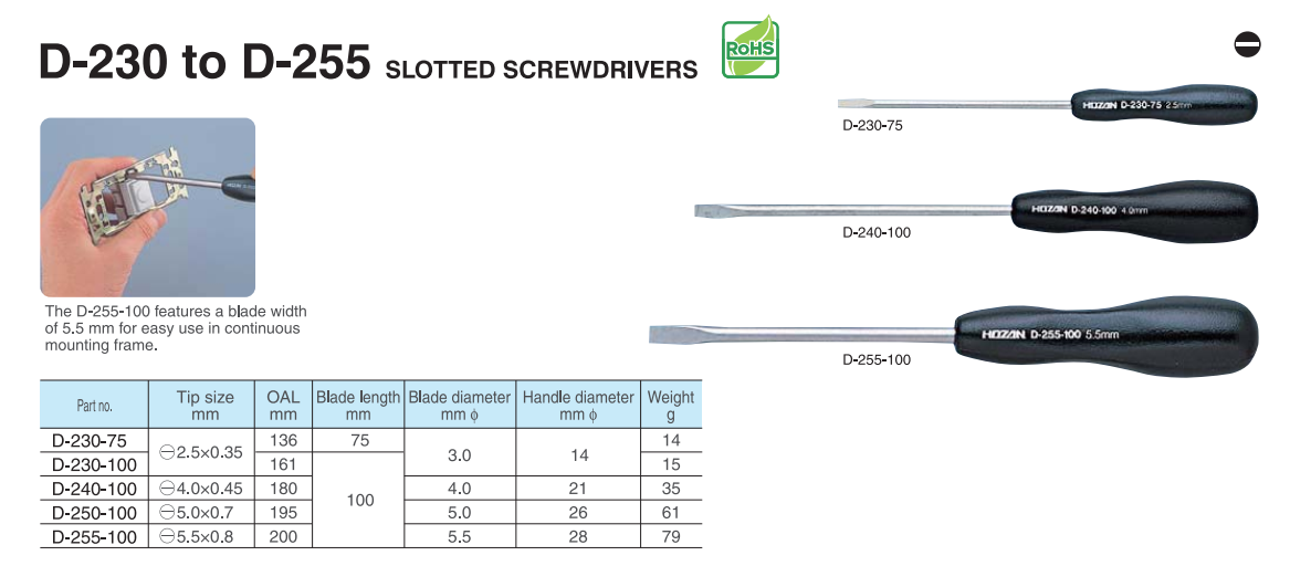 Tuốc nơ vít 2 cạnh ( - ) HOZAN D-230 to D-255